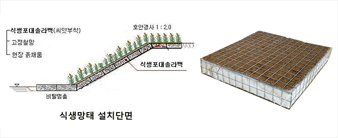 1) 식생망태의 구성 : 고정철망 + 식생포대솔라백