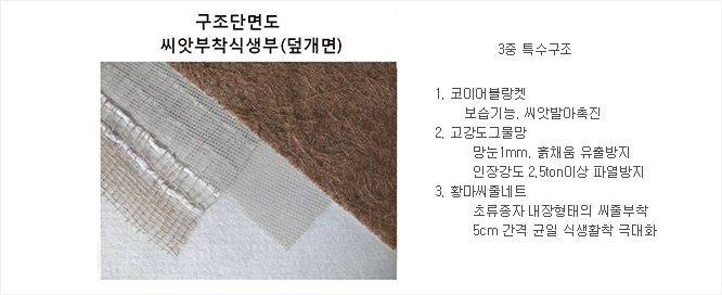 5) 고정철망은 용융아연도금 철망으로 부식 방지 및 굴요성(flexibility)이 좋음